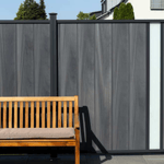 Die besonders breiten, co-extrudierten Profile dieser Multi-Fence Sichtblende stechen durch ihre auffällig, lebhafte Maserung direkt ins Auge. Sie passen sich, durch klare Linien und einen ansprechenden Farb- und Materialmix, perfekt in modern gestaltete Gärten ein. Durch die feinen Farbnuancen in der Oberfläche wird der Gesamteindruck aufgelockert und bleibt dennoch elegant und schlicht.